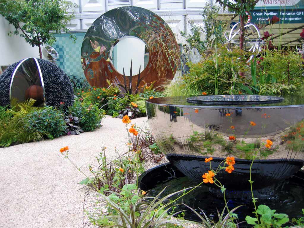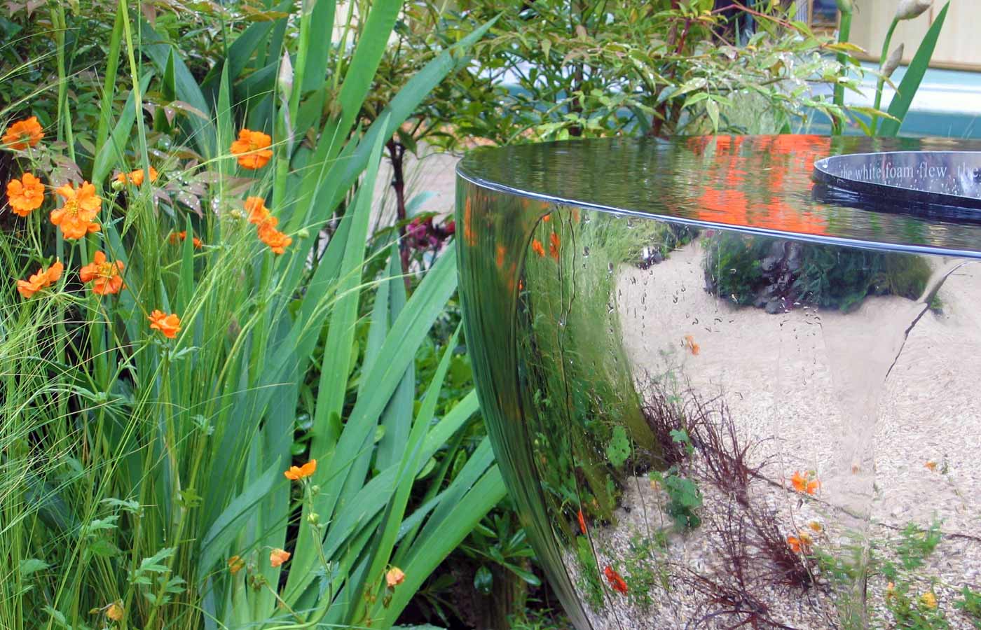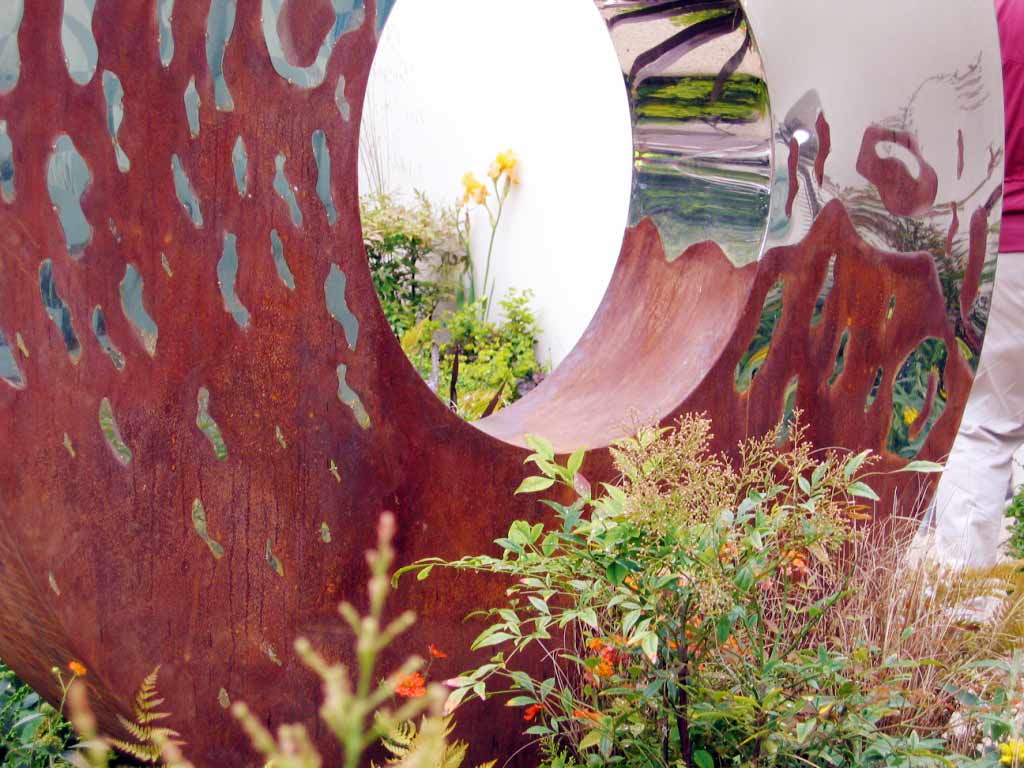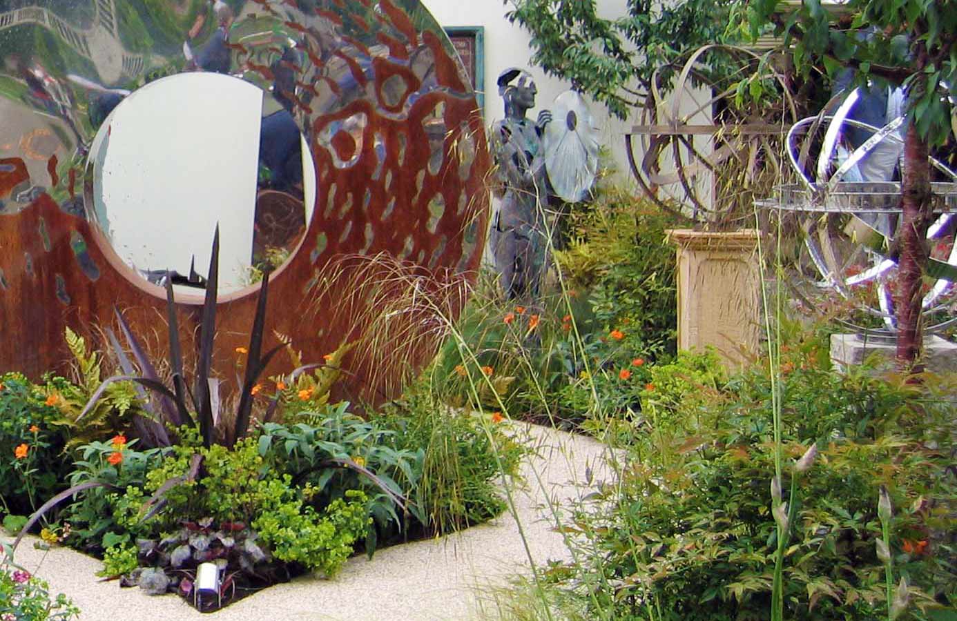 The second of Echinops’ exhibition stands designed for the garden art of David Harber at the RHS Chelsea Flower Show was once again a winner of the RHS Sundries Trophy for excellence of presentation. The style for this stand was pretty, informal and very flowery with a country garden feel. Colours of plants and flowers were chosen to complement the sculptures being displayed.