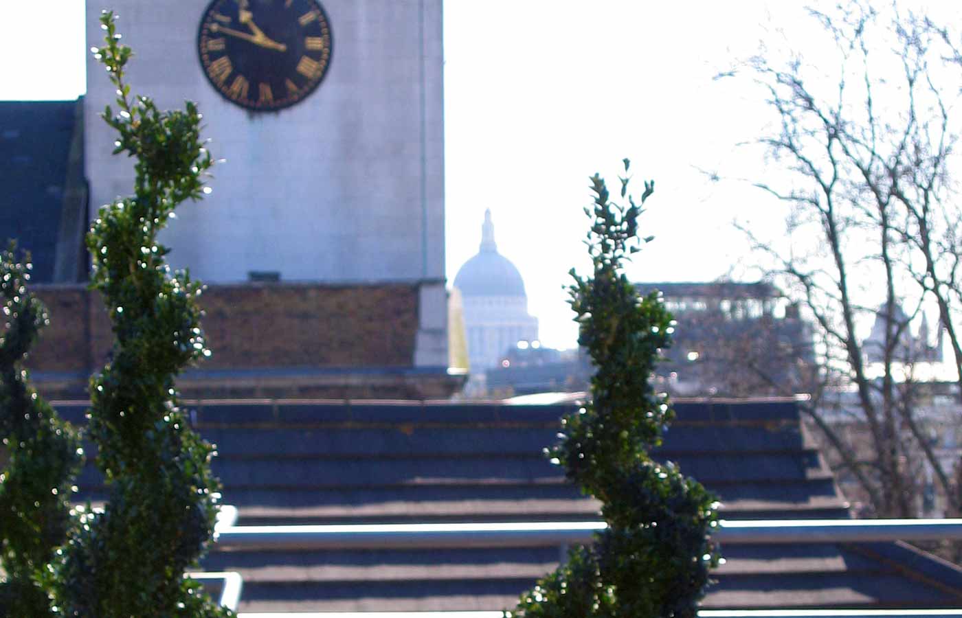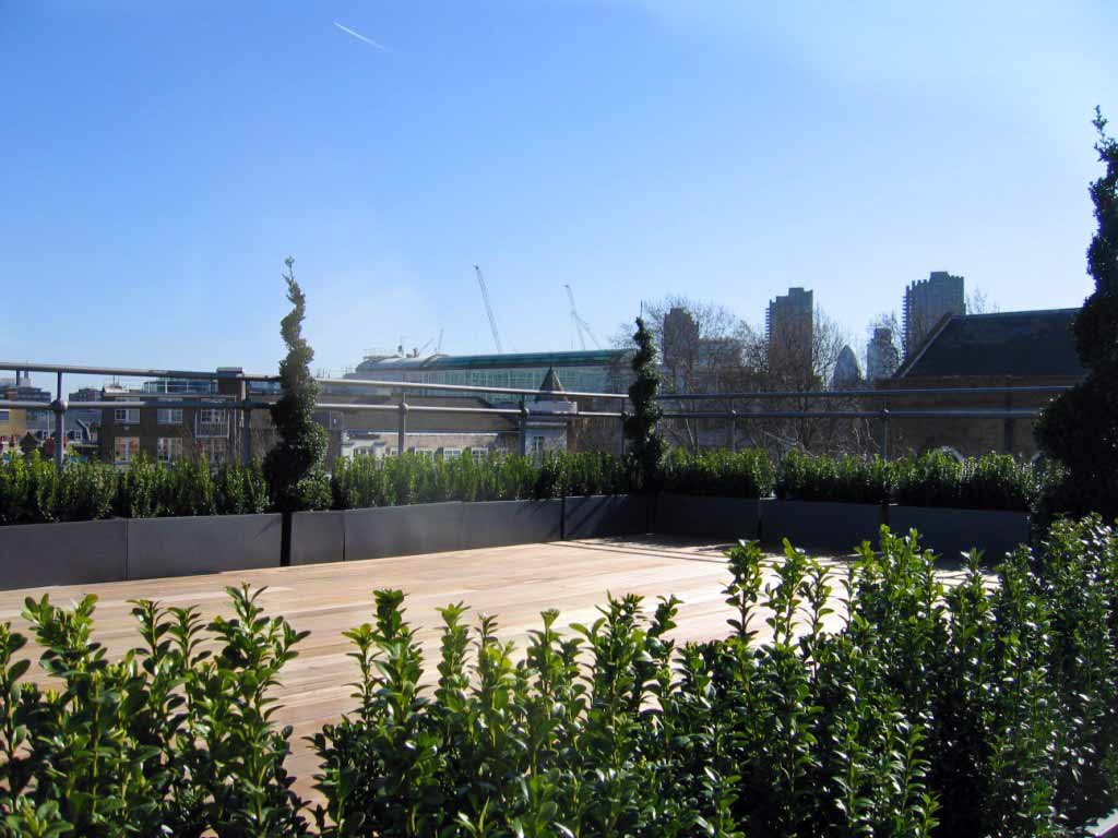 Gardens ► Office roof terrace Office roof terrace Show info ▼ 1 2 3 4 Office roof terrace design in Clerkenwell, London, with planters forming a barrier around the perimeter. Box hedging and structural shapes give year round evergreen interest. ◄ All gardens ◄ Previous gardenNext garden ► ◄ ►